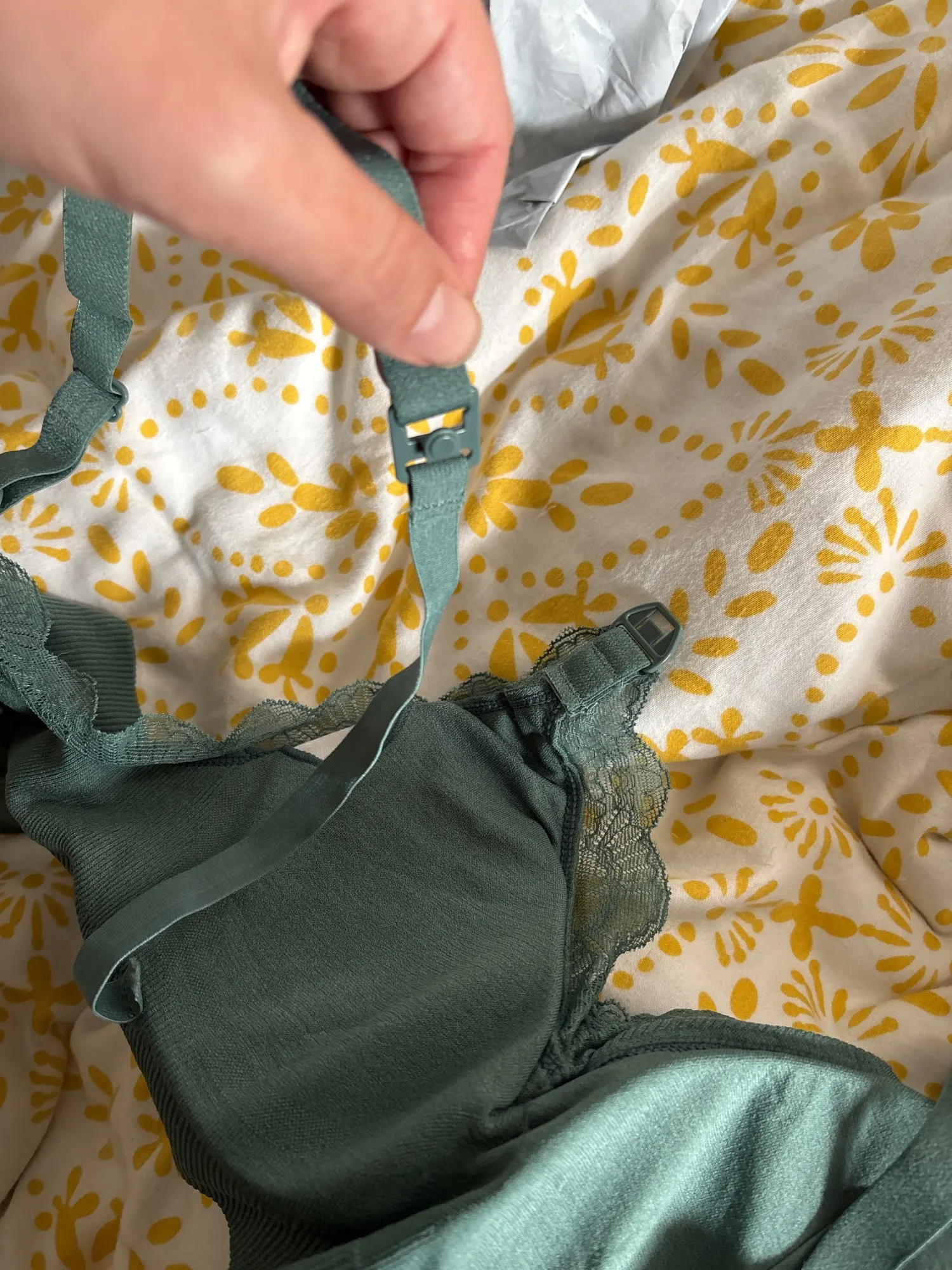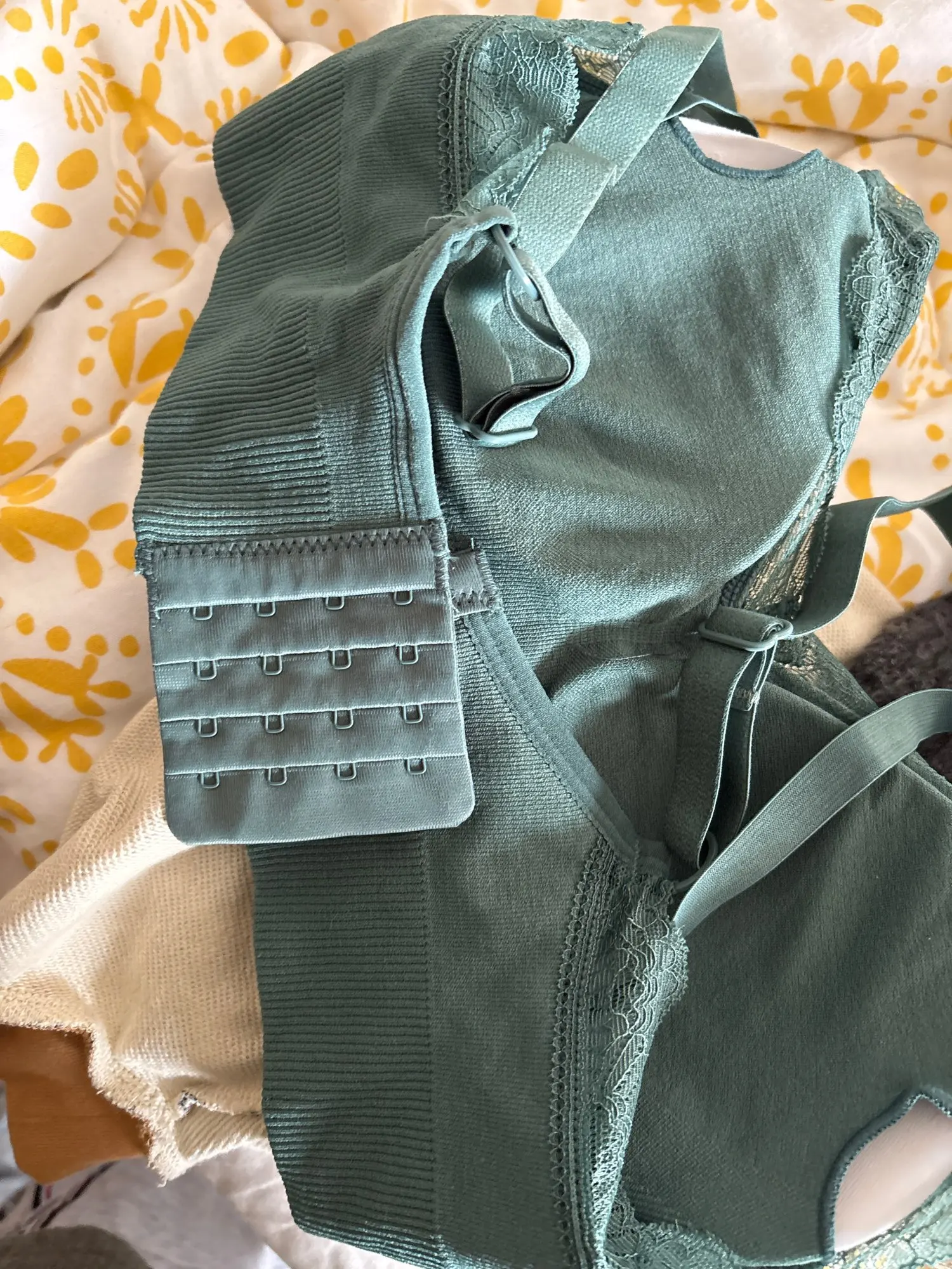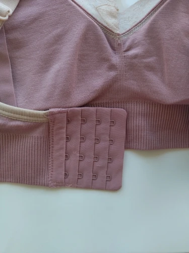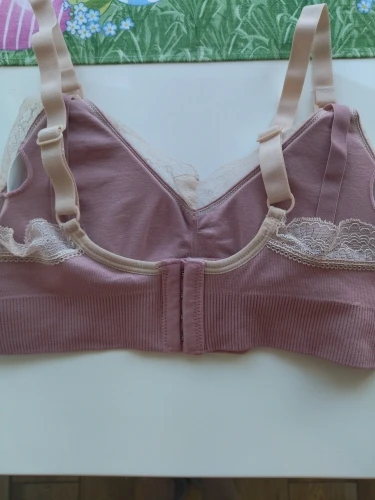 Seamless lace nursing bra designed for pregnancy and postpartum comfort. This wireless maternity bra features a front-open design for discreet, convenient breastfeeding access. Crafted from a soft nylon and elastane blend, it delivers breathability and gentle support through all seasons. Adjustable straps and a four-hook-and-eye back closure provide a customized fit that adapts as your body changes. Free from harmful chemicals, this bra prioritizes skin health and comfort when you need it most.