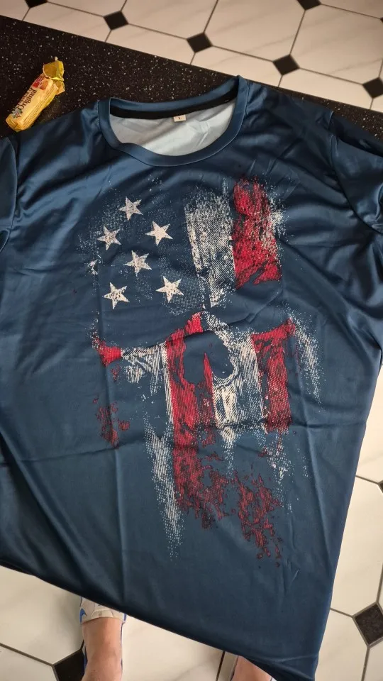 This men's 3D printed t-shirt offers a breathable and comfortable short sleeve option for spring and summer. It features a retro flag and 3D skull design, making it a unique graphic tee. The crew-neck vintage t-shirt style is a hot trend, combining vintage alphabet punk aesthetics with casual appeal. Made from polyester broadcloth, this top is easy to wear with a pull-on closure. Hand wash only for care.
