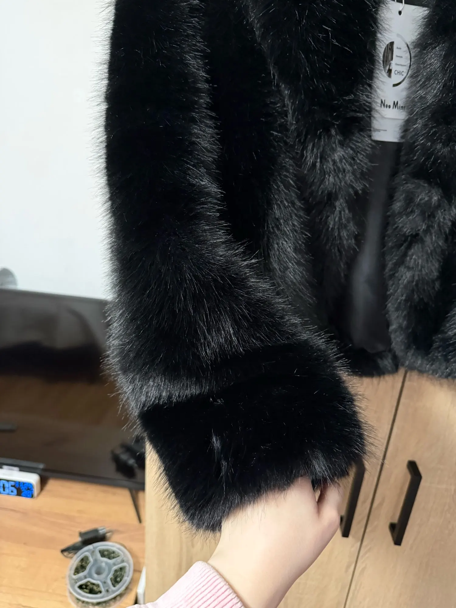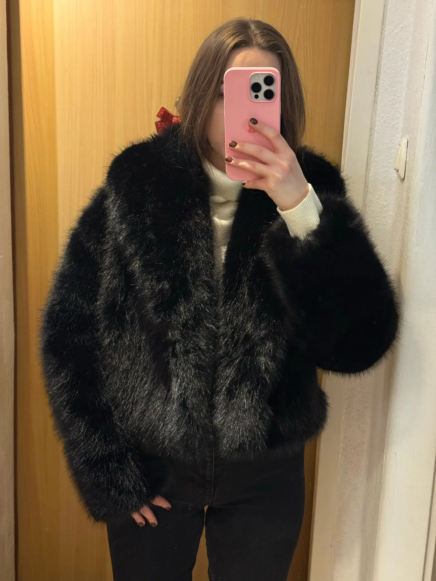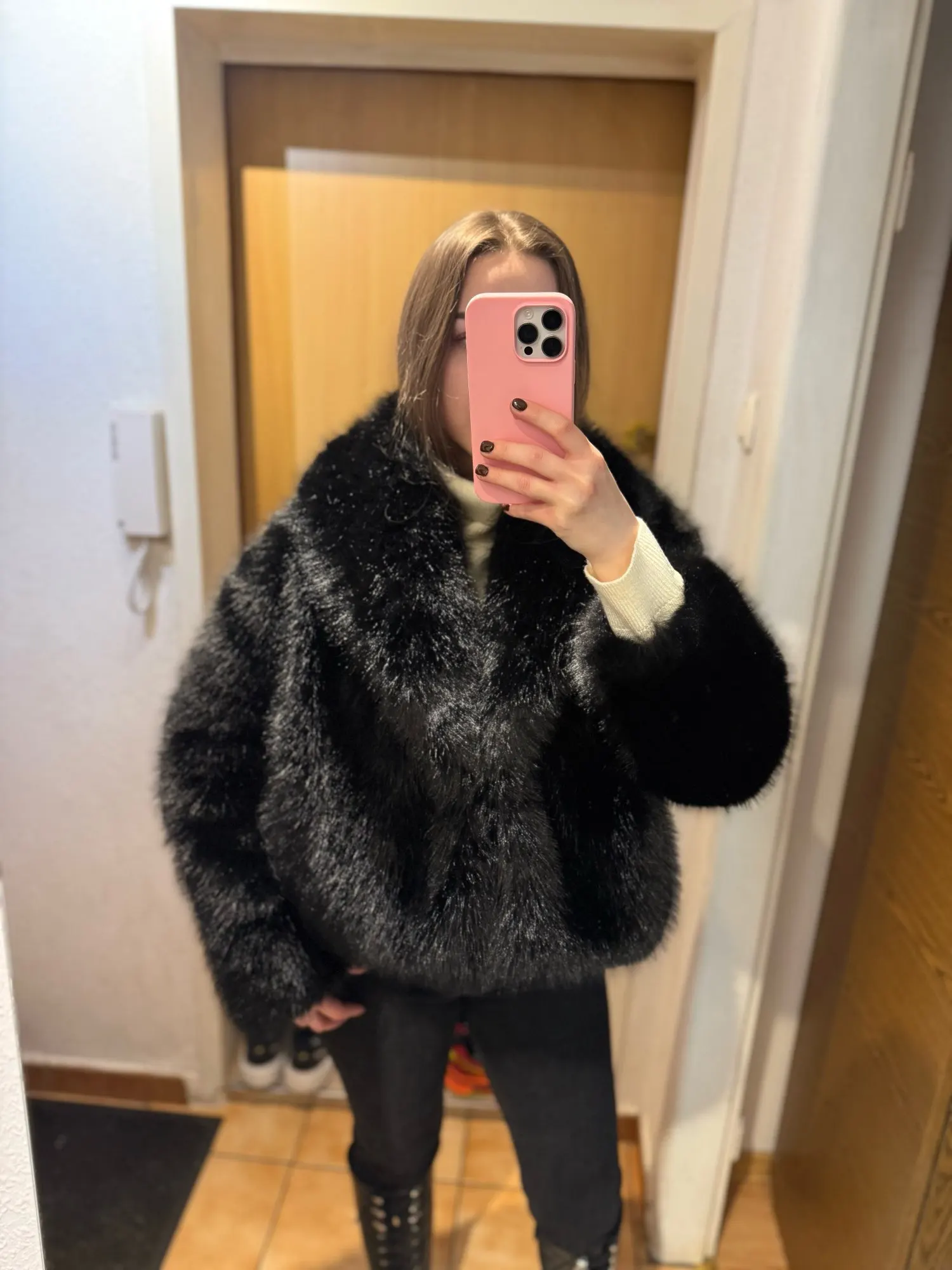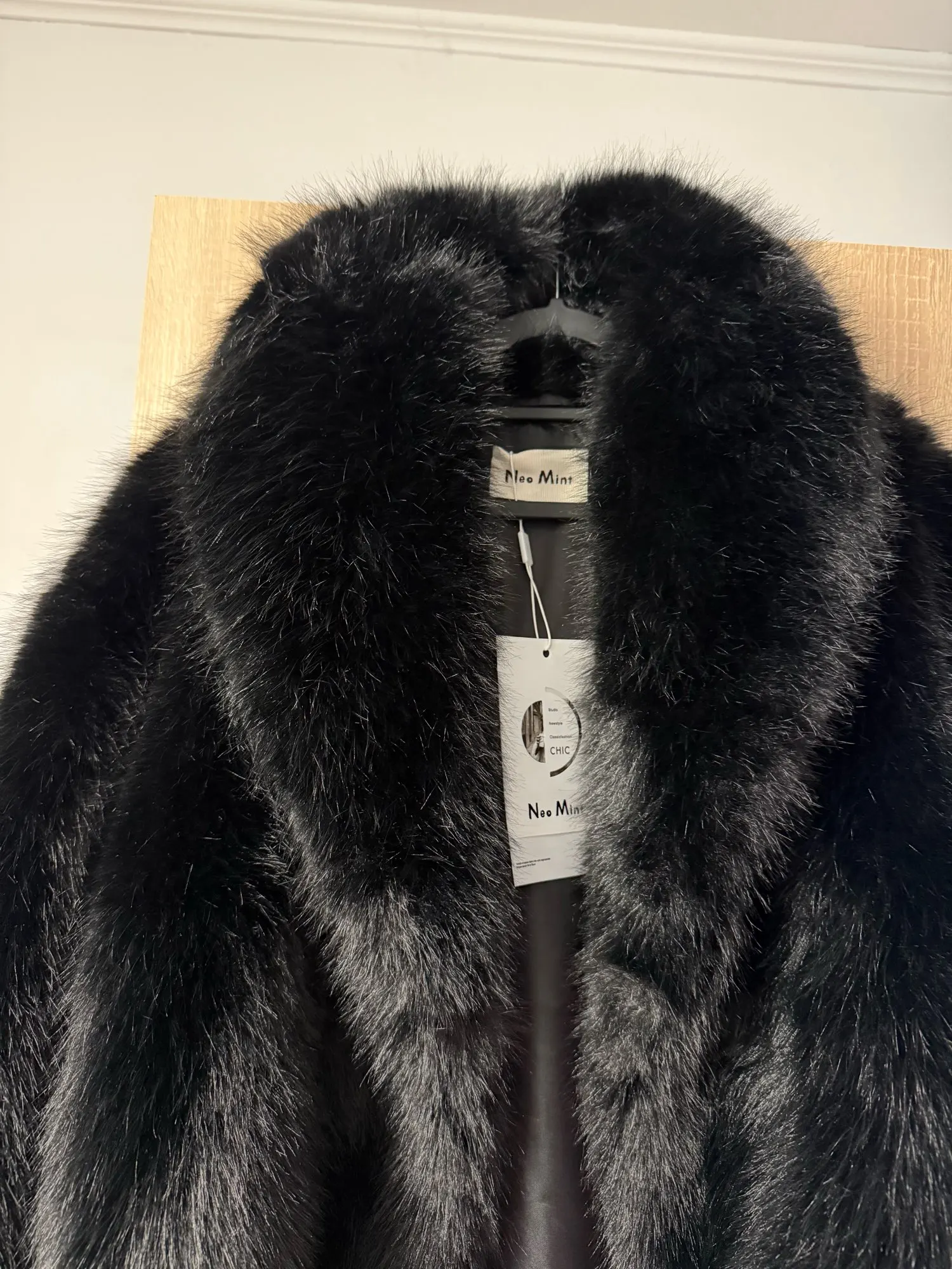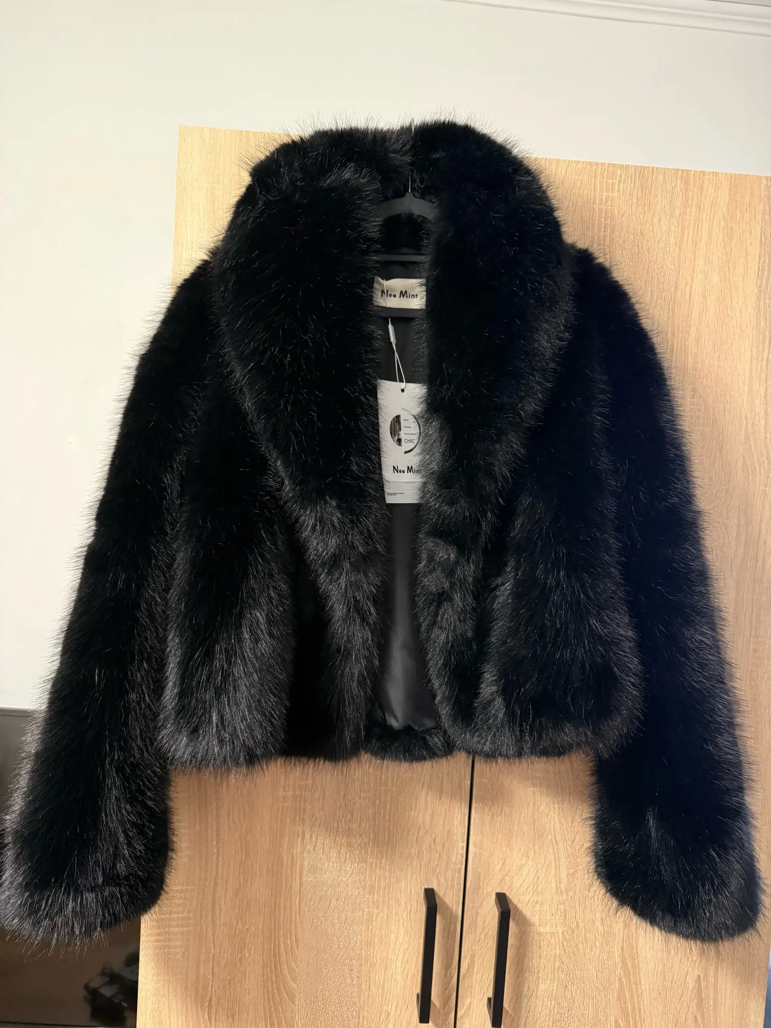Elevate your winter style with this Neo Mint women’s faux fox fur coat, designed in a classic vintage black. The shawl collar and full pelt faux fox fur create a luxurious look, while the short length offers a modern touch. Made from a soft polyester cotton blend, this fur coat provides warmth and comfort throughout the colder months. Covered buttons add to the elegant design, and convenient pockets make it practical for everyday wear. Perfect for autumn and winter, this Neo Mint faux fox fur coat combines timeless sophistication with cozy functionality, making it a standout piece in any wardrobe.