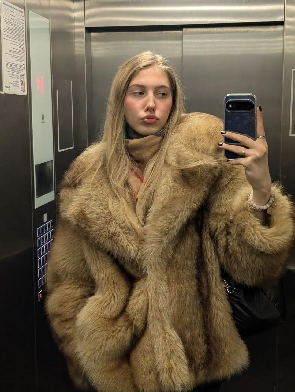 Stay warm and stylish in this women’s yellow striped faux fur jacket by Neo Mint. Designed with an oversized fit, this long winter coat offers a cozy feel with its soft polyester cotton blend. The vintage-inspired fur jacket coat features a turn-down collar, covered buttons, and practical pockets, making it both fashionable and functional. The luxurious faux fur gives a fluffy, high-quality look, perfect for autumn and winter. With its bold stripes and warm materials, this Neo Mint piece is an ideal choice for anyone seeking a standout, comfortable outerwear option for cold weather.